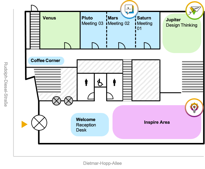 During this process, I closely collaborated with the global facility and IT teams, as well as our brand teams and partner agency Zeichen und Wunder, to create a consistent, harmonious, and scalable blueprint for setting up new and transforming existing customer-facing spaces into SAP Experience Centers.